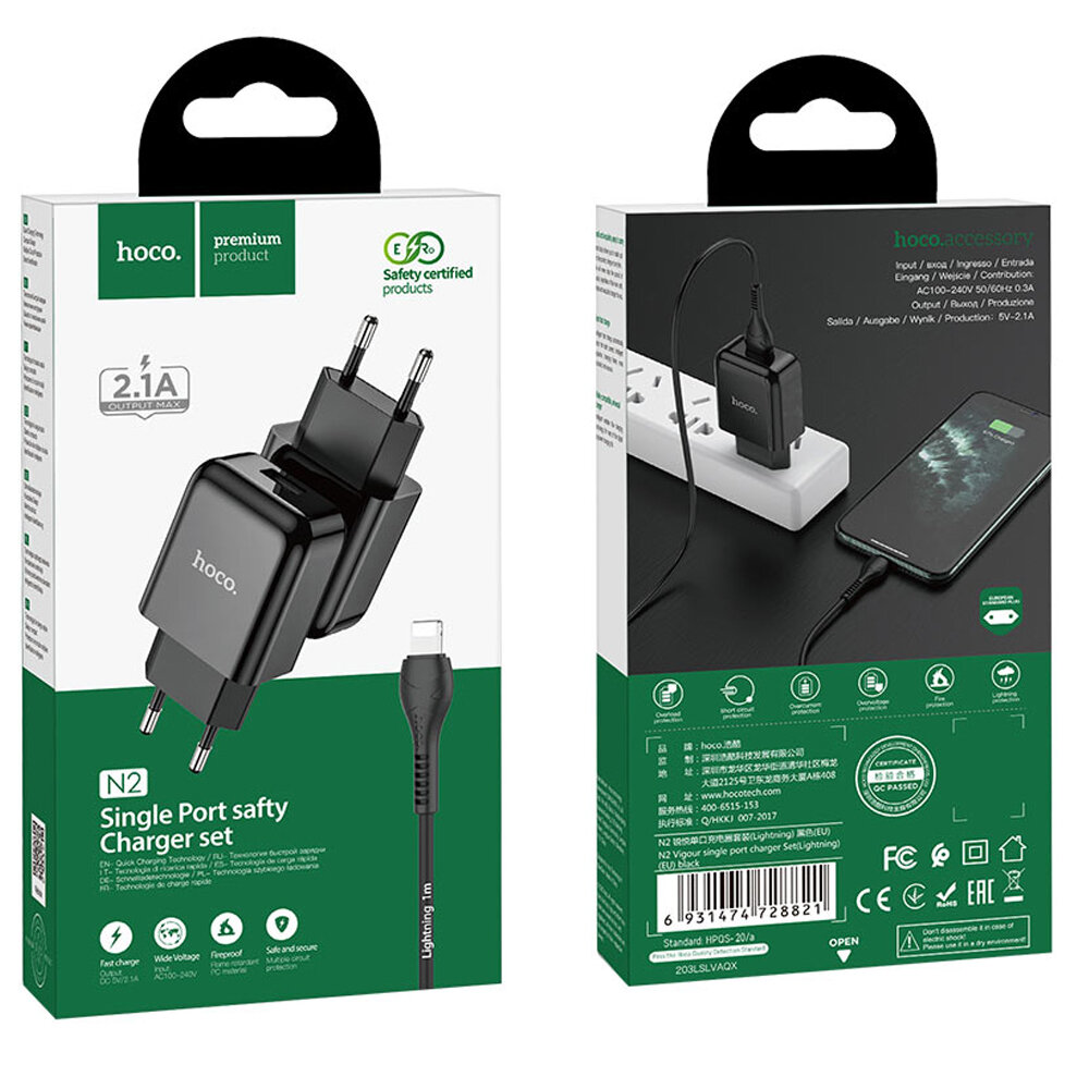 Сетевое зарядное устройство Hoco N2 Vigour EU набор с кабелем Lightning 1м.