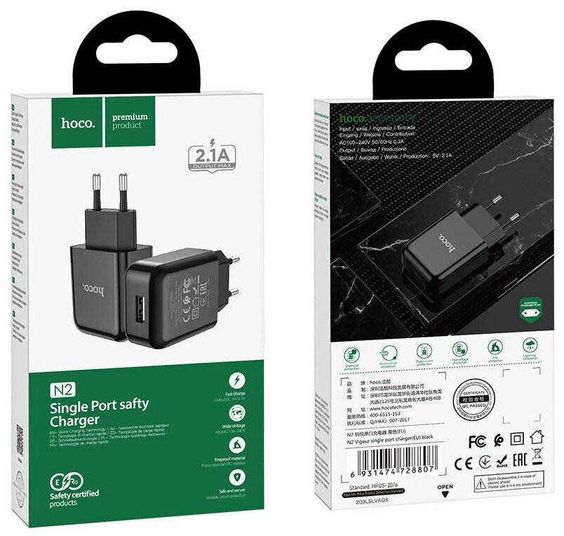 Сетевое зарядное устройство Hoco N2 Vigour, черный