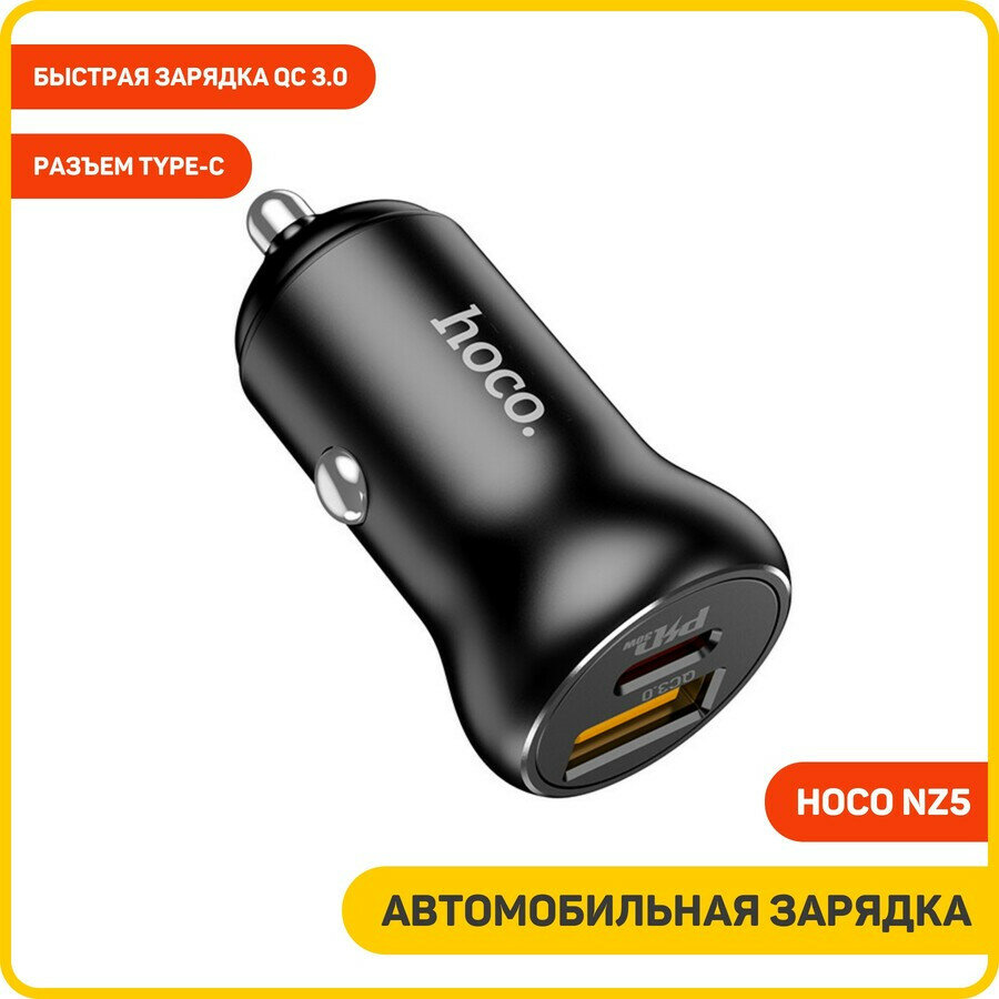СохранитьАвтомобильное зарядное устройство (АЗУ) Hoco NZ5 QC 3.0 (USB+Type-C) 5 А, черный интересное: