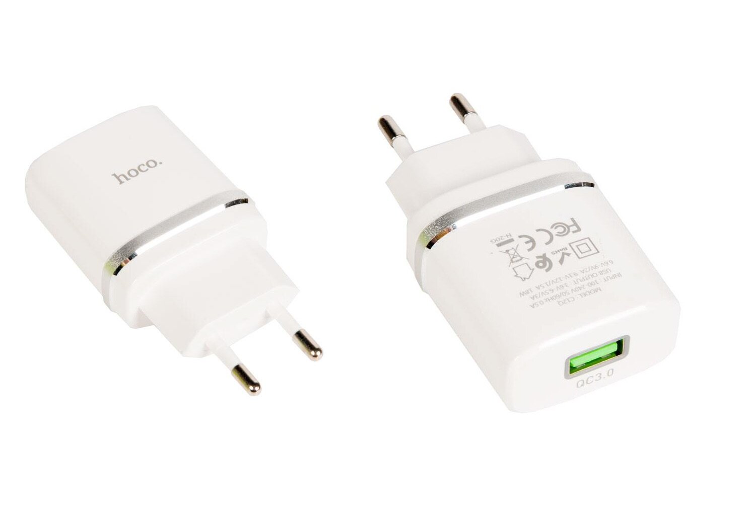 Блок питания (сетевой адаптер) HOCO С12Q Smart QC3.0, один порт USB, 5V, 3.0A, белый