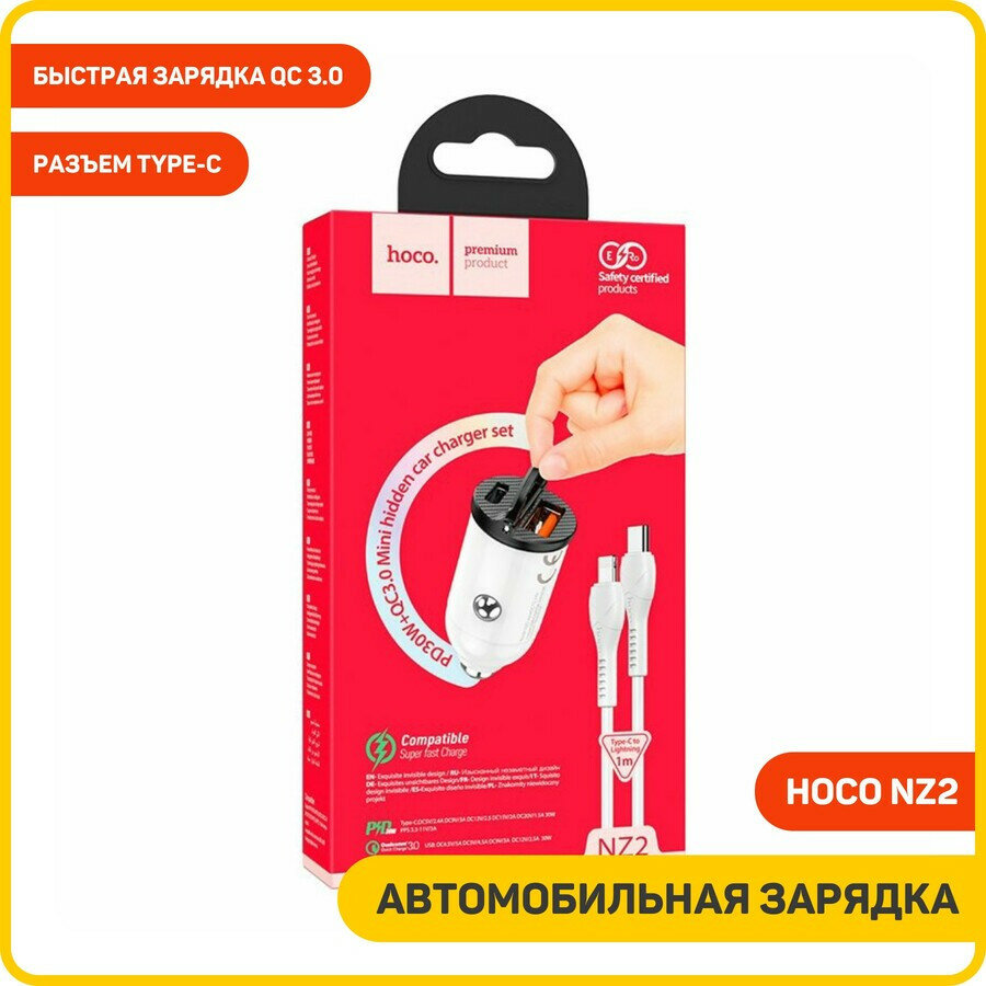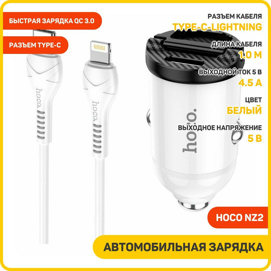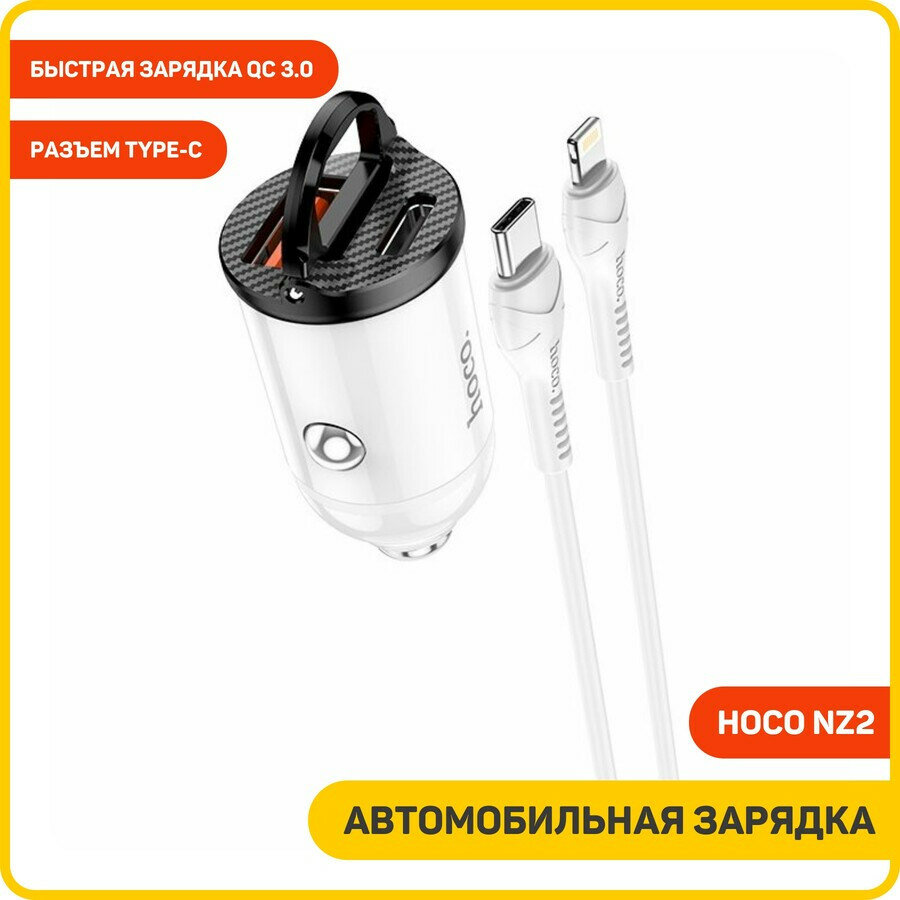 Купить Автомобильное зарядное устройство (АЗУ) Hoco NZ2 QC 3.0 (USB+Type-C) + кабель Type-C-Lightning, 5 А, белый