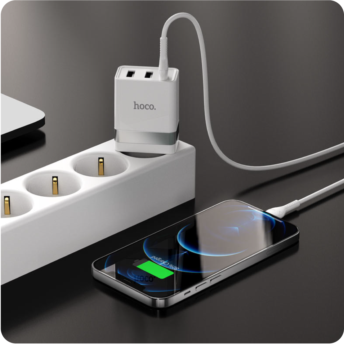 Сетевое зар. устр. Hoco N21 Pro 2USB/1С 30W белое