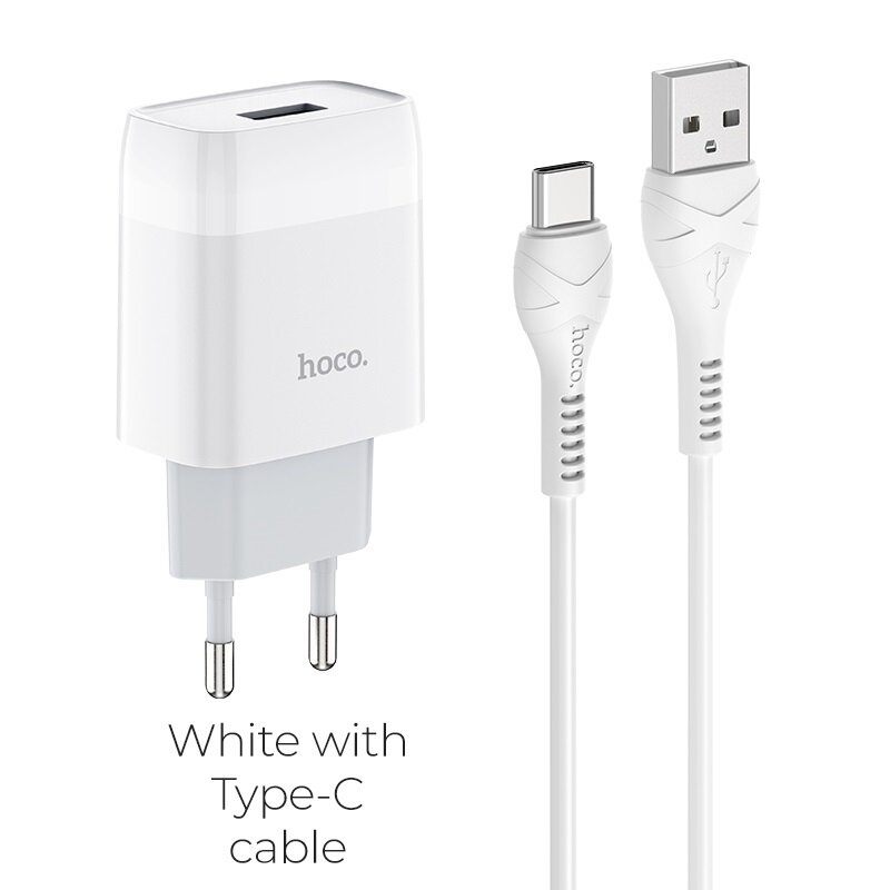 СЗУ HOCO C72A Glorious 1xUSB, 2.1А + USB кабель Type-C, 1м (белый)