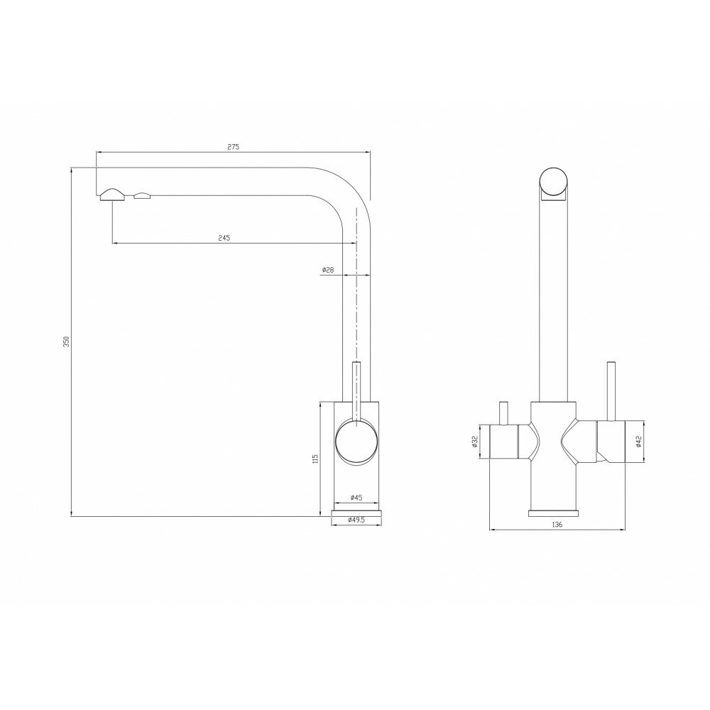Смеситель для кухни под фильтр с краном для питьевой воды Milacio Ultra ( MCU.553. SS ) нержавеющая сталь