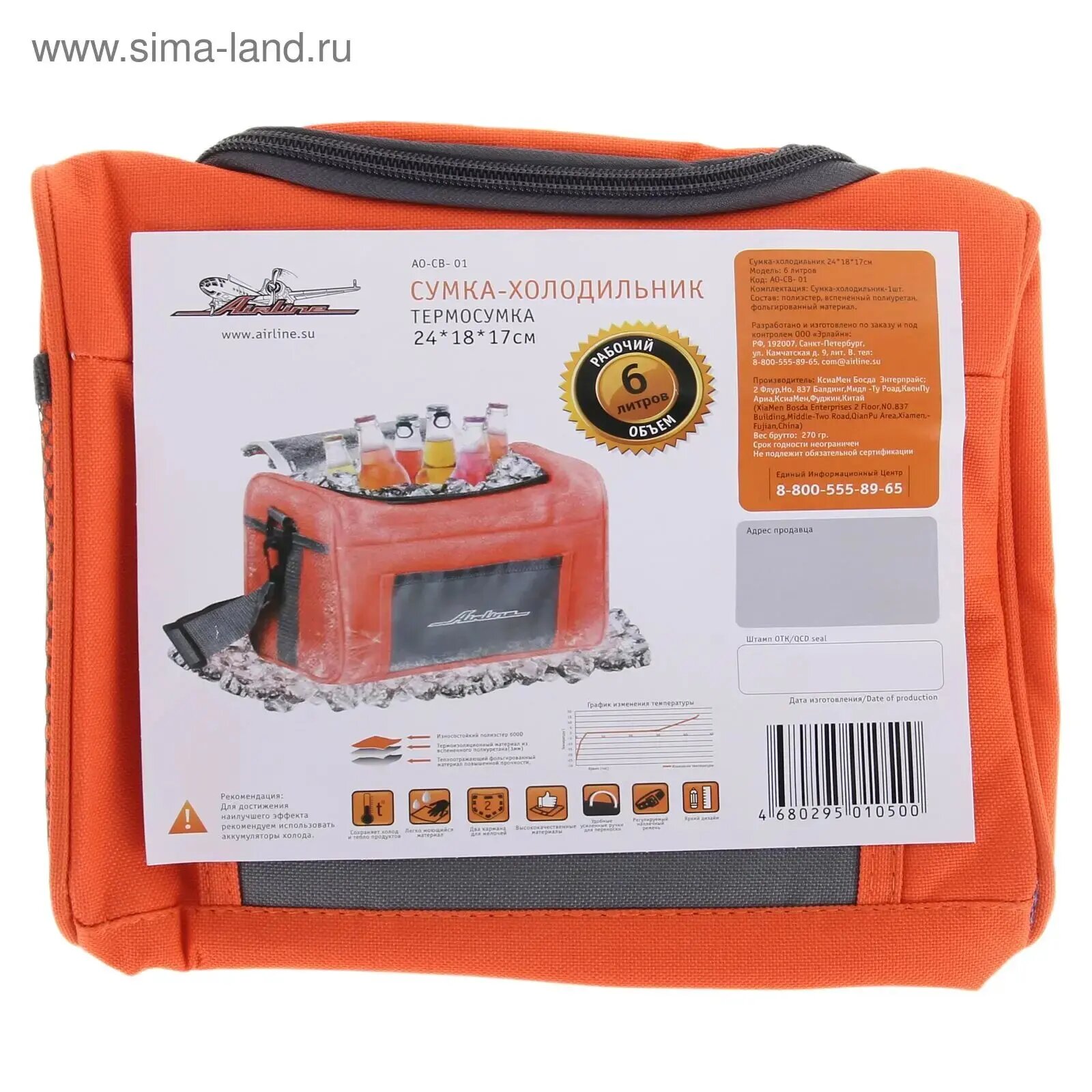 Сумка-холодильник (термосумка) 6 л, 241817 см (AO-CB-01) AIRLINE / арт. AOCB01 - (1 шт)