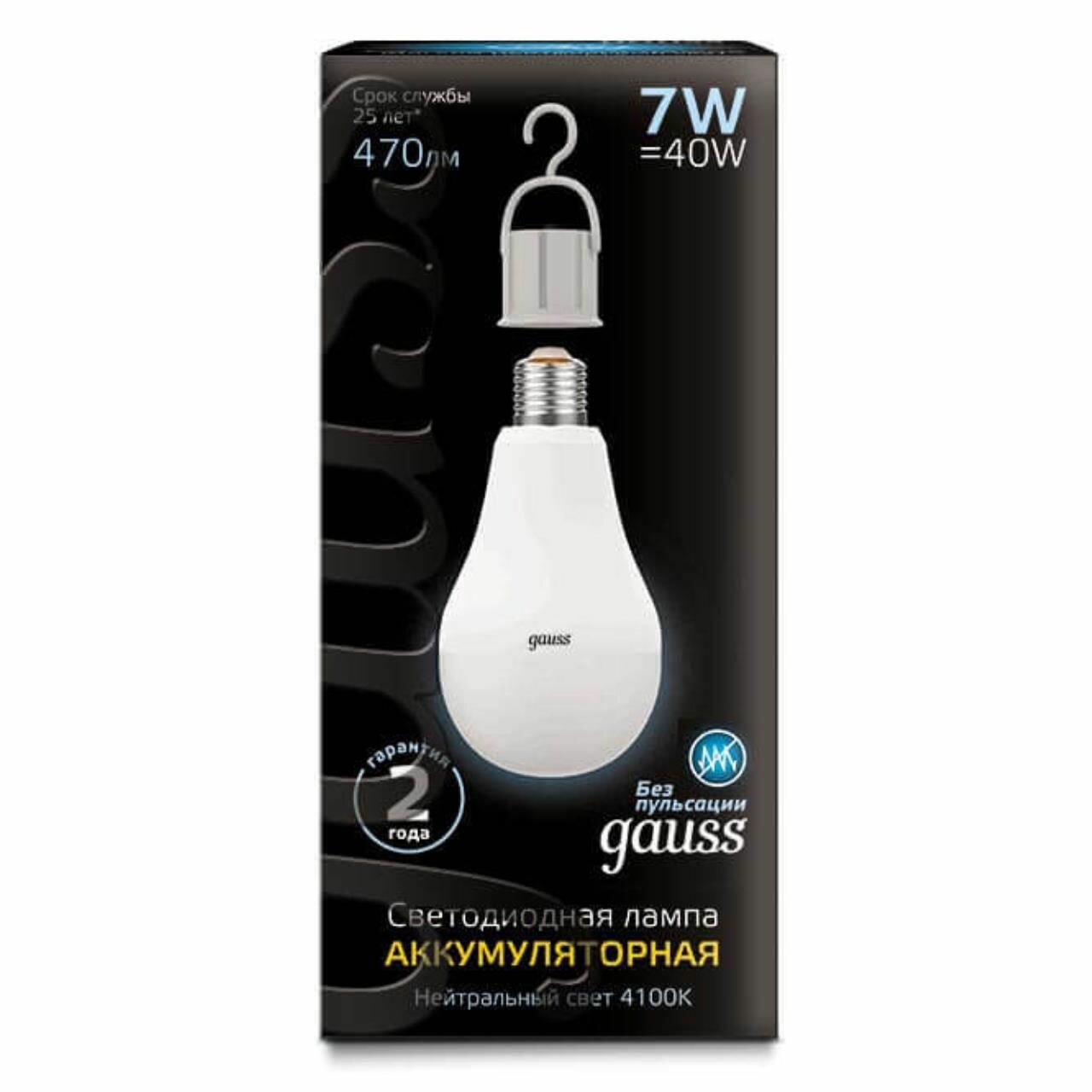 Лампа светодиодная Gauss E27 A60 7W 470L 4100K с литий-ионным аккумулятором