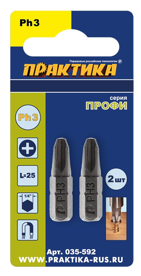Бита отверточная ПРАКТИКА "Профи" PH-3 х 25мм (2шт), блистер (035-592) интересное: