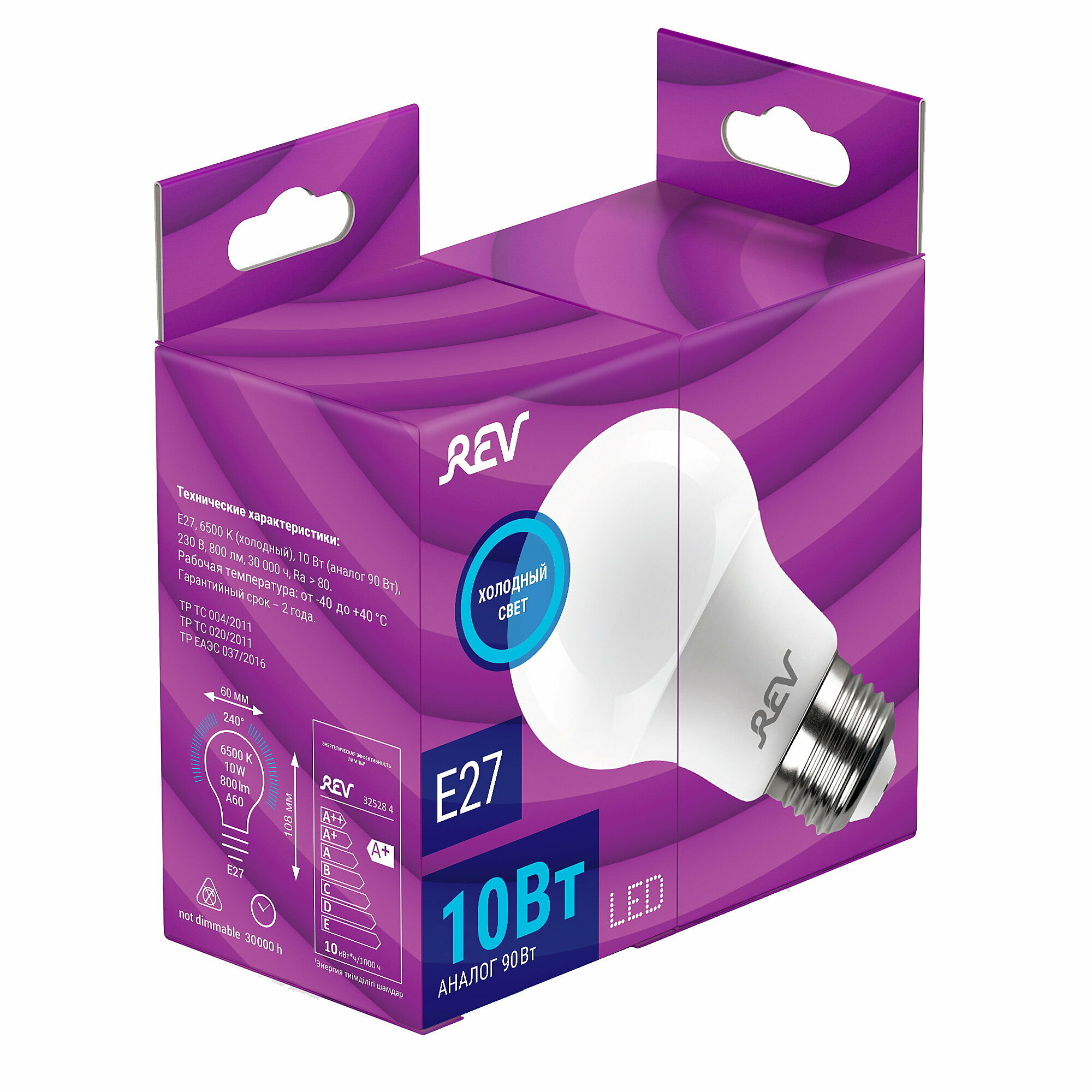 Лампочка светодиодная REV, груша, Е27, 10W, 6500K, холодный свет