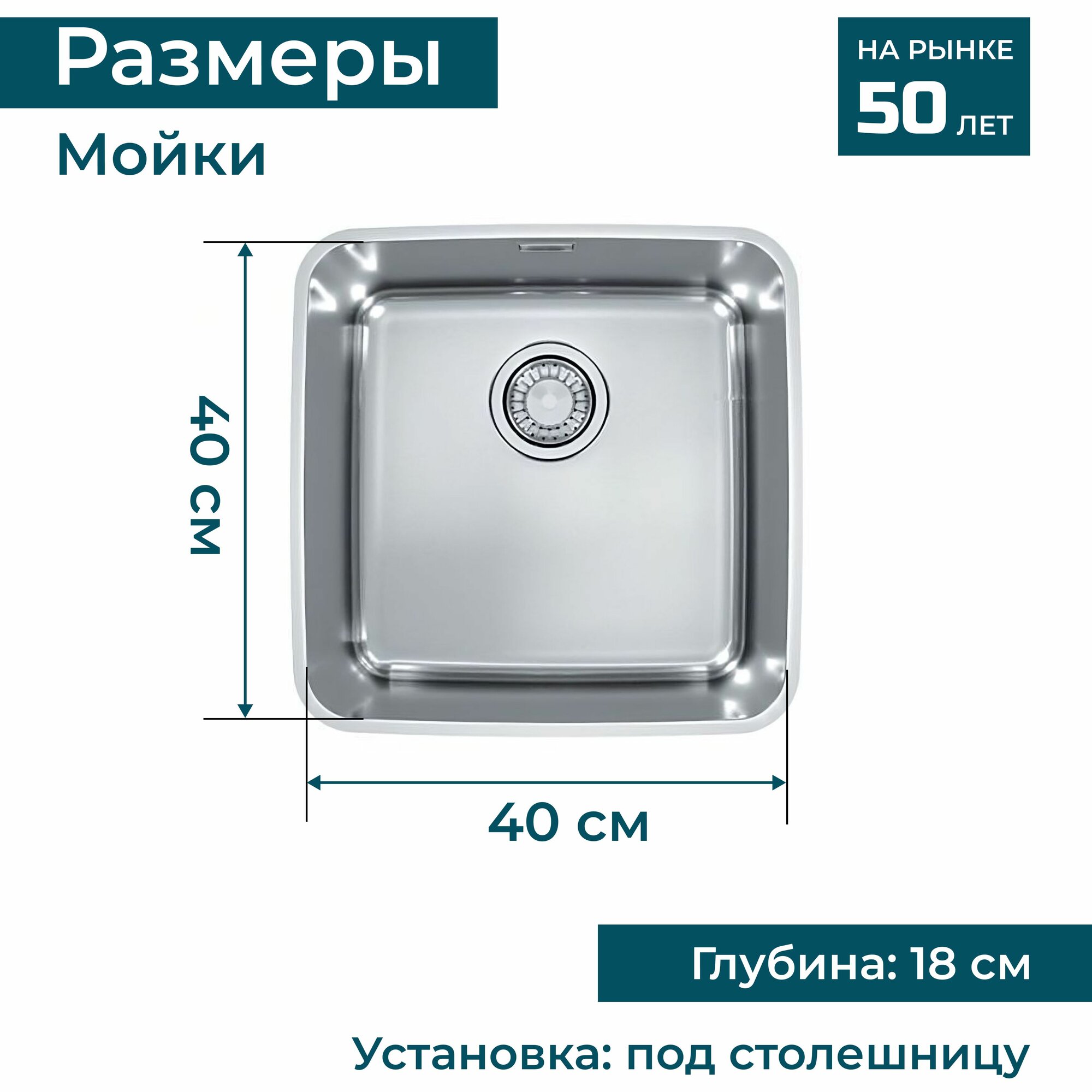 Мойка для кухни врезная под столешницу нержавеющая сталь ALVEUS LUNO 30 SAT 90 FI 40 X 40 см с сифоном. Цвет серый металлик