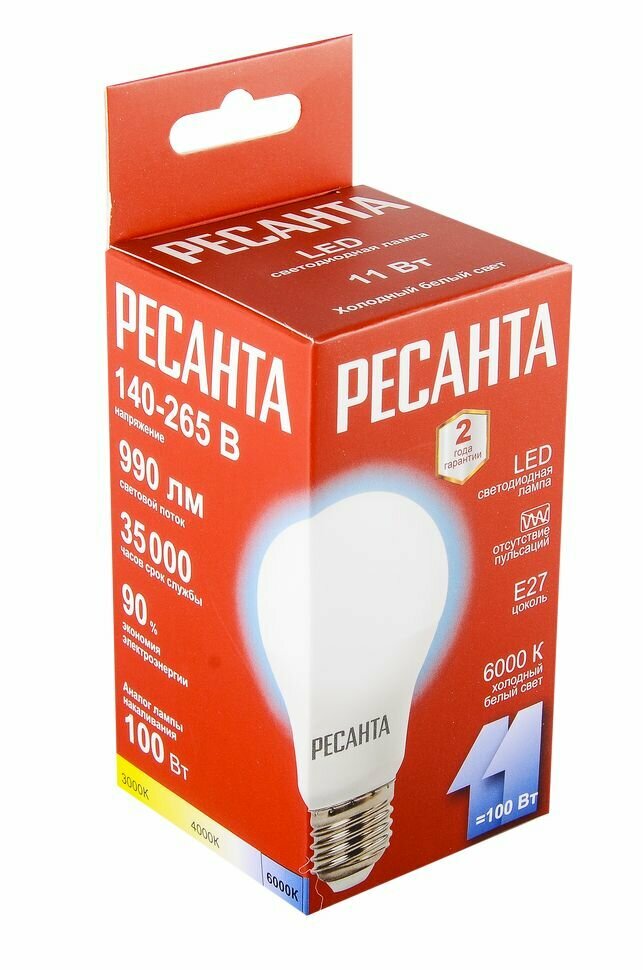 Лампа светодиодная Ресанта LL-R-A60-11W-230-6K-E27 интересное: