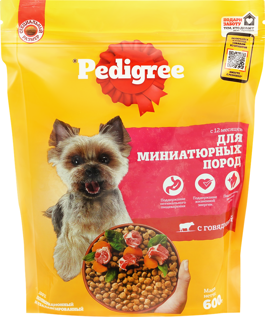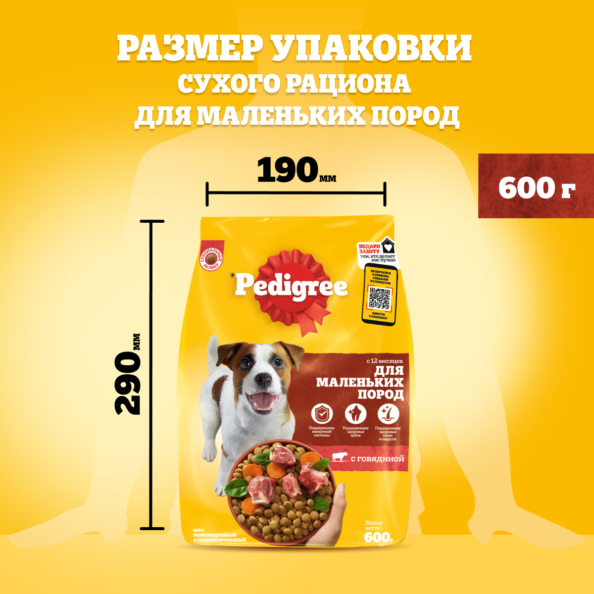 Сухой корм Pedigree для собак мелких пород, говядина, 600 г