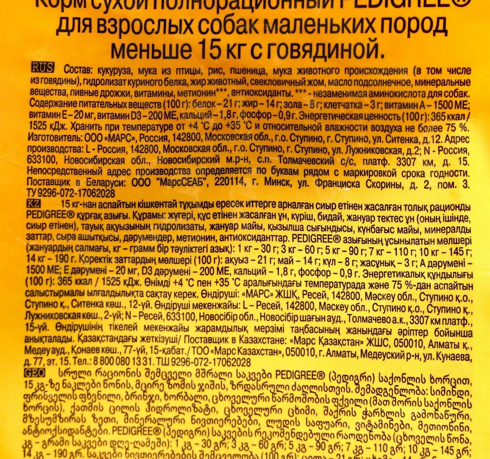 10276113 /10230957/10240934/10113889 Педигри сухой корм для взрослых собак собак мелких пород Говяди