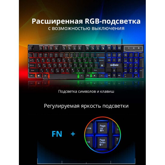 Defender Mayhem чёрная Игровая клавиатура (RGB подсветка, USB, GK-360DL)