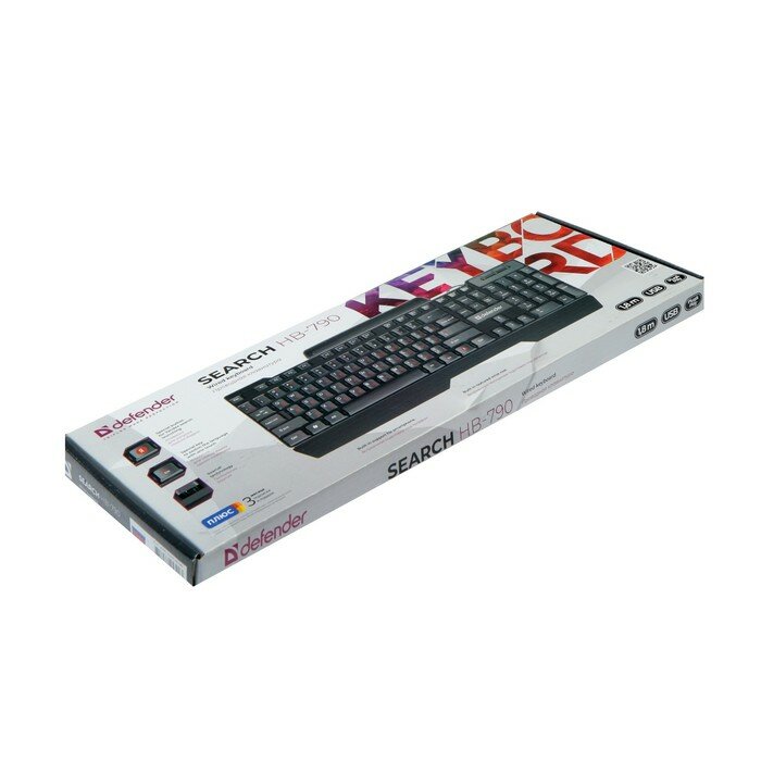 Клавиатура проводная Defender, Search, HB-790, мембранная, USB, цвет: чёрный, (арт.45790) US