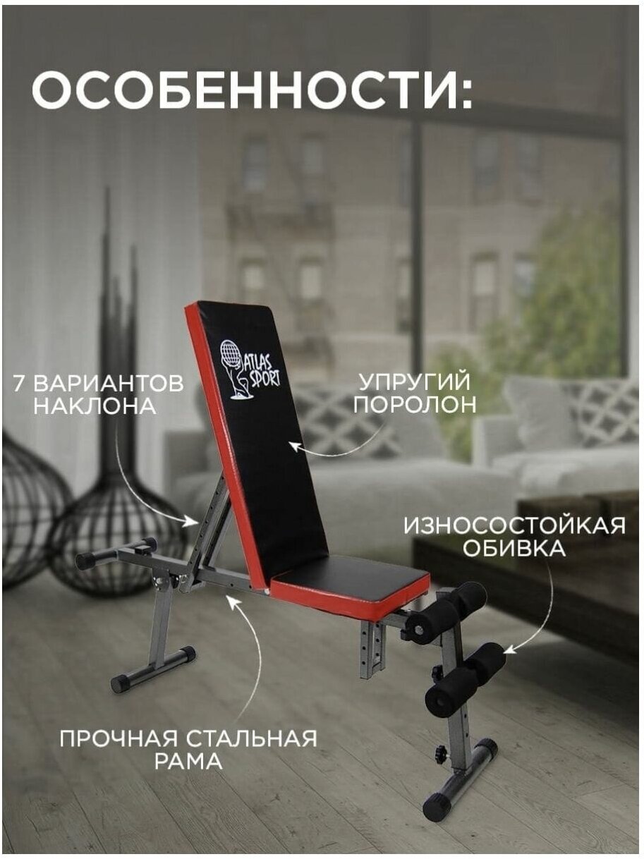 Скамья для жима пресса и гантелей силовая спортивная складная для дома ATLAS SPORT AS-1003 интересное:
