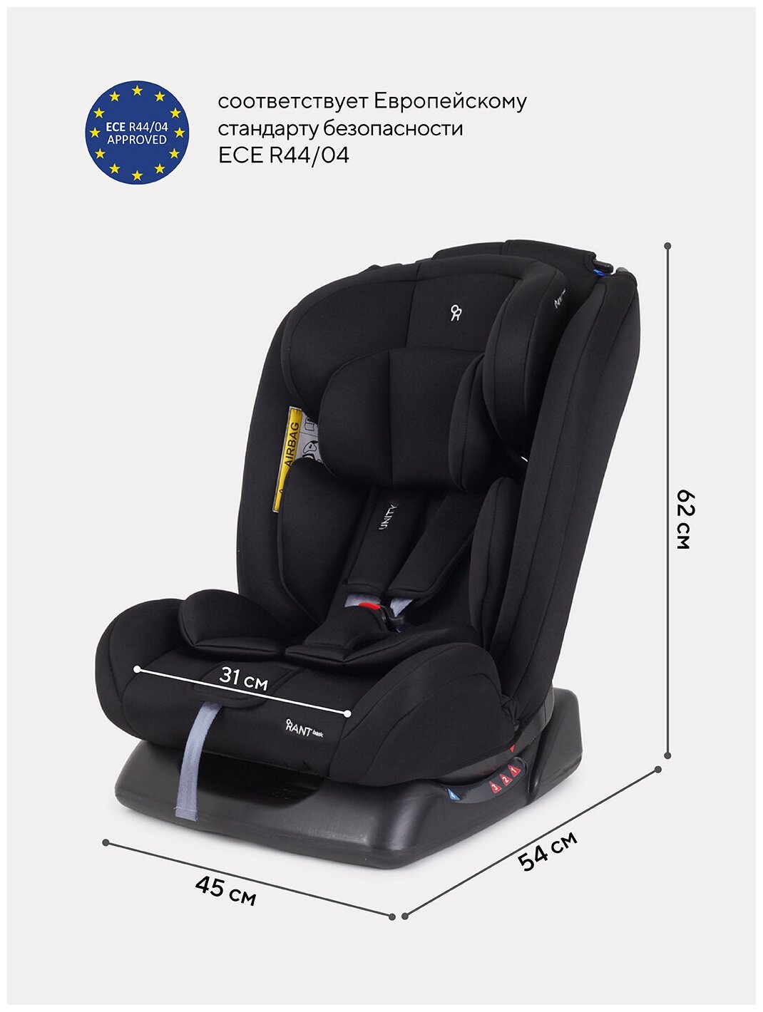 Автокресло детское Rant basic Unity арт. ZY26, группа 0+/1/2/3 от 0 до 12 лет вес 0-36 кг рост 40-145 см, Black