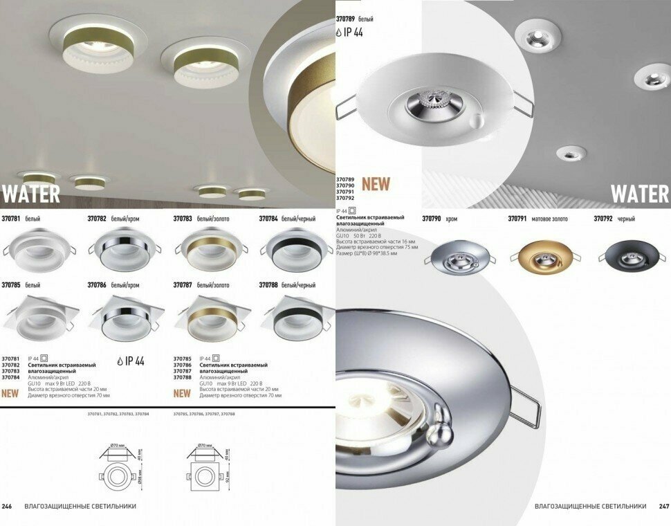 | Дополнительная информация | Светильник встраиваемый Novotech WATER, 370789, 50W, GU10 |