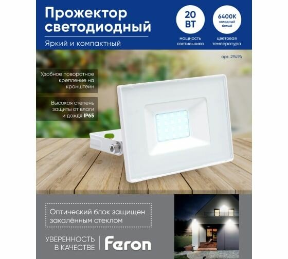 Светодиодный прожектор LL-919 IP65 20W 6400K, FERON 29494 (1 шт.)