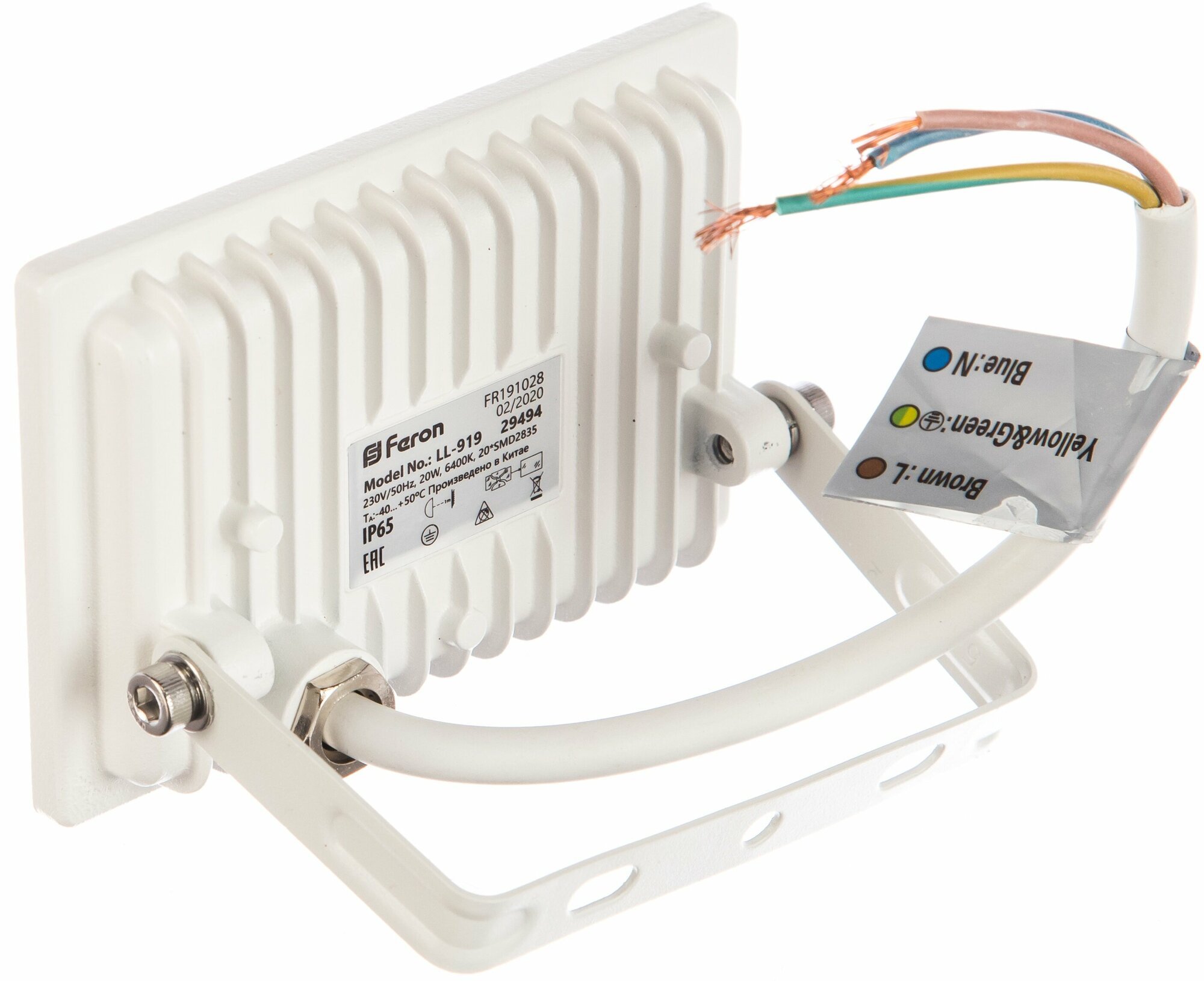 Прожектор светодиодный FERON 20Вт 6400K IP65 AC220V/50Hz белый LL-919, 29494