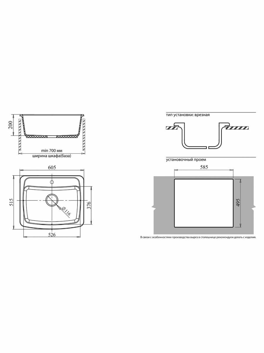 | Минусы: | Прорезанное заранее отверстие для крана |