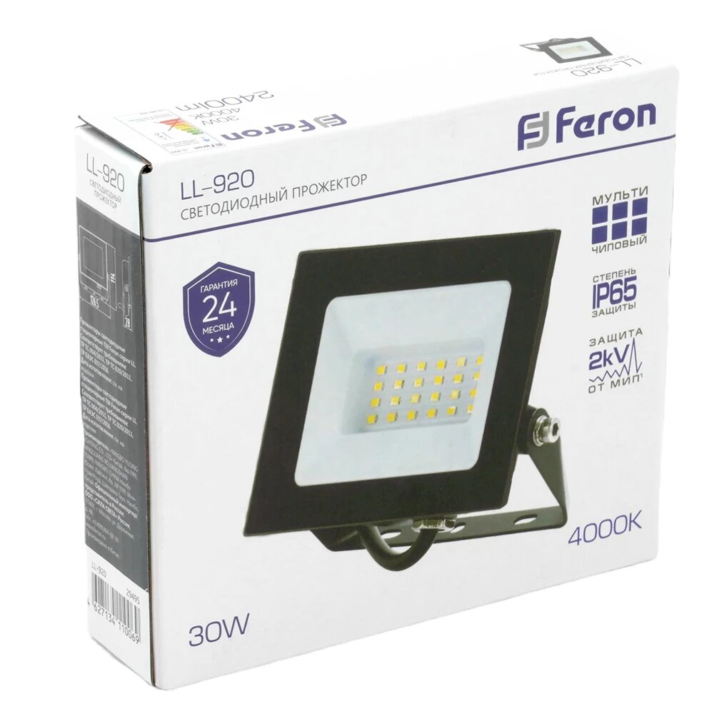 Светодиодный прожектор LL-920 IP65 30W 4000K, FERON 29495 (1 шт.)