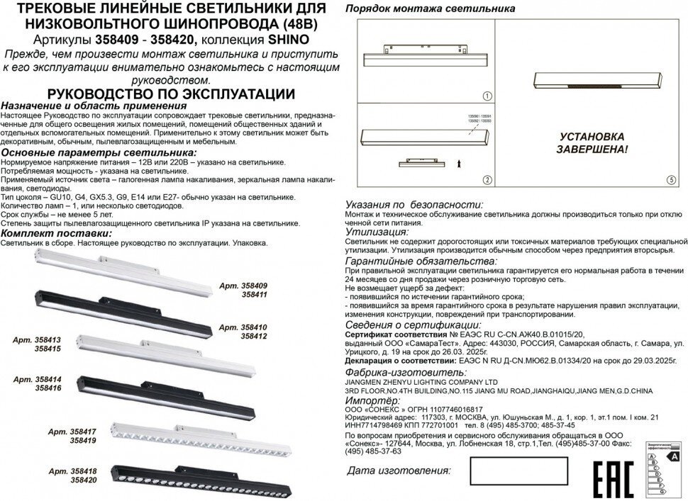 | Подробная комплектация | светильник в сборе, настоящее руководство по эксплуатации, упаковка |