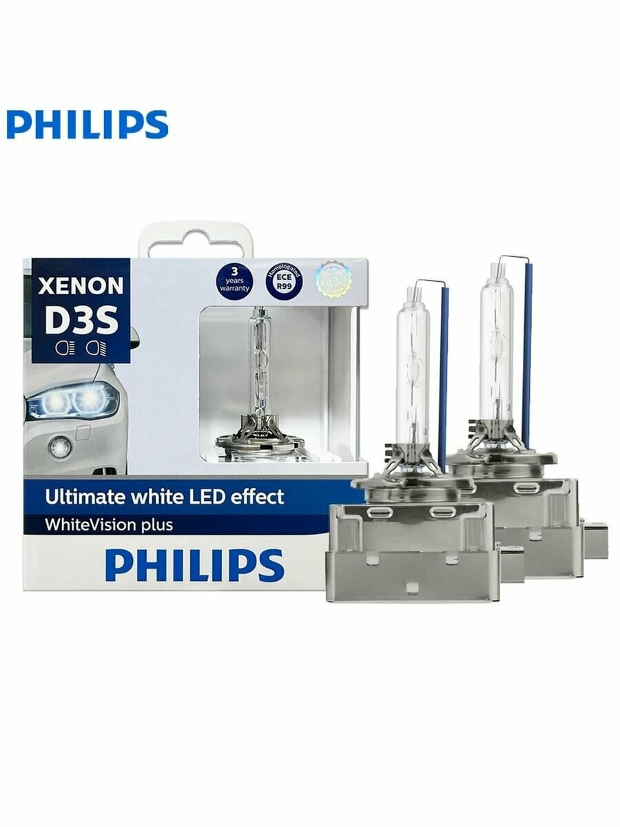 Ксеноновая лампа Philips D3S 35W +120% Xenon WhiteVision 2шт QR подлинности 42403WHV2X2