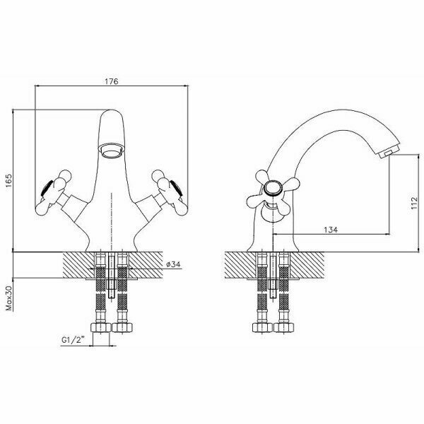 Смеситель для умывальника 1/2 кер ESKO VN26-2 "Vienna" литой, крепление "шпилька"