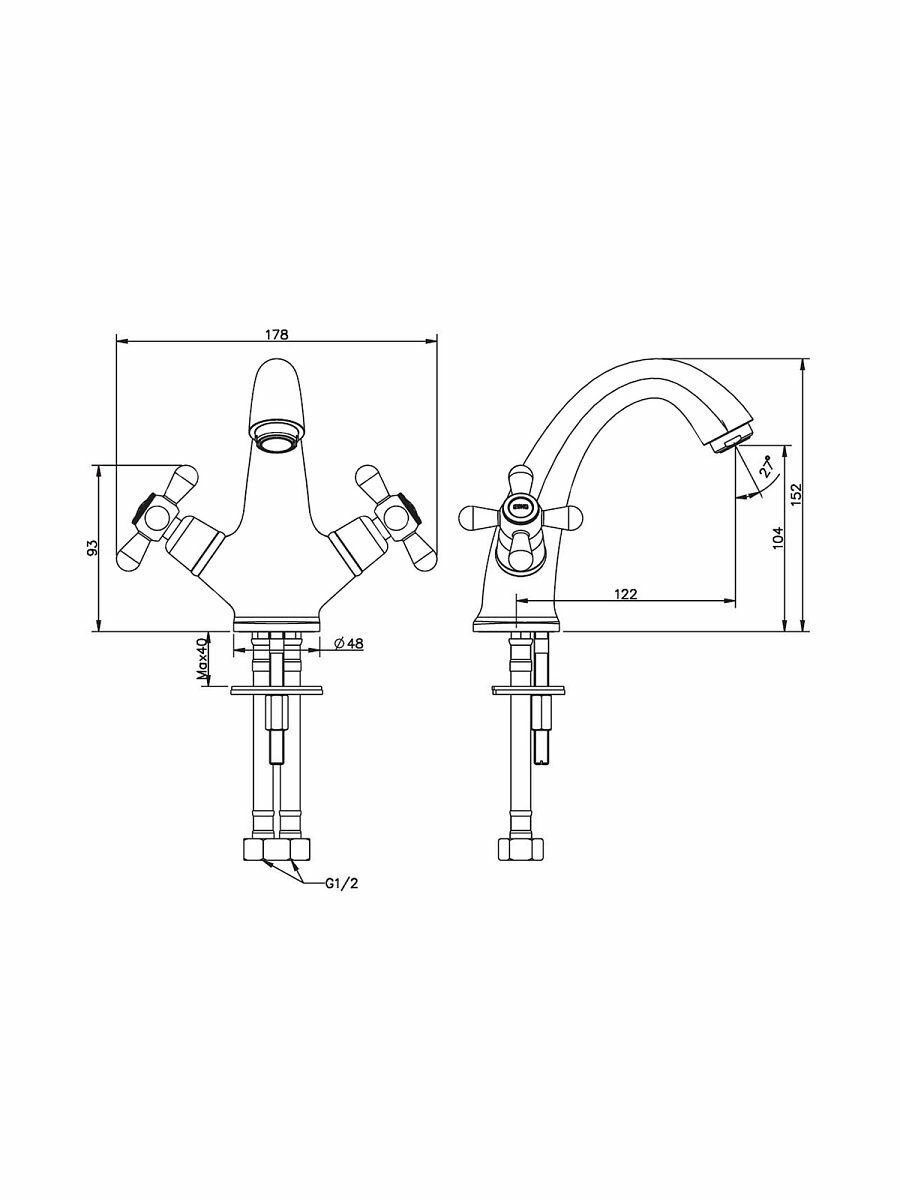 Смеситель для раковины ESKO Vienna VN 26-2, двухвентильный, 176 х 165 мм, хром