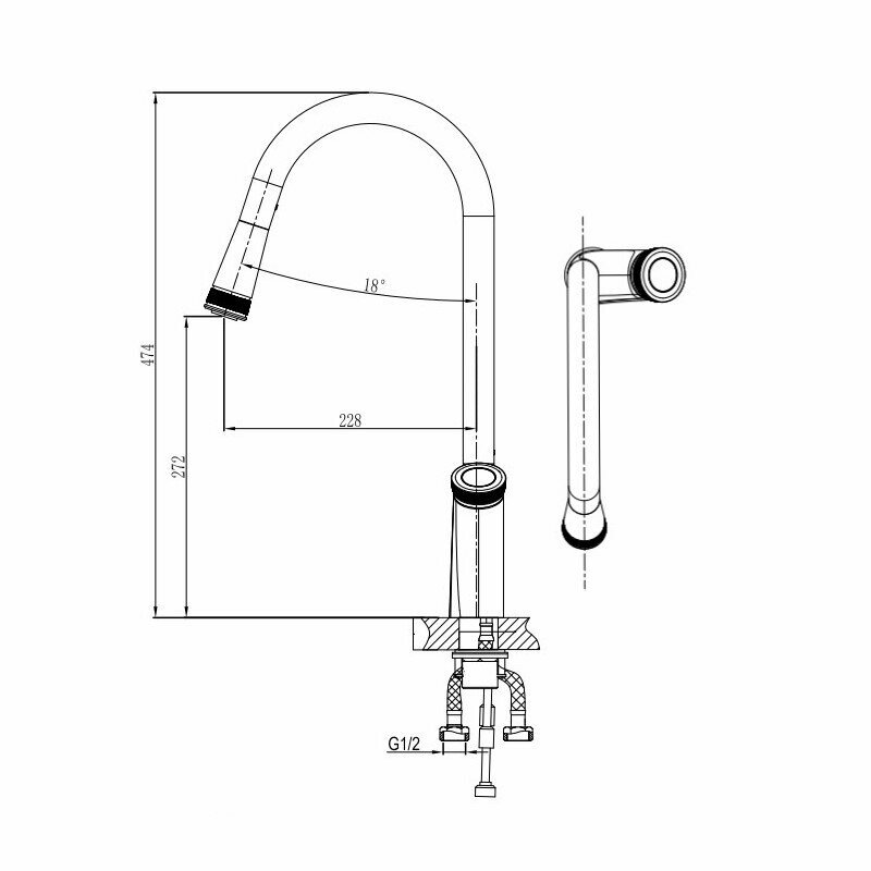Смеситель для кухни 35 кнопочный картридж D&K DA1482501 выс.пов.излив,п/шпильку выдвижная лейкахром