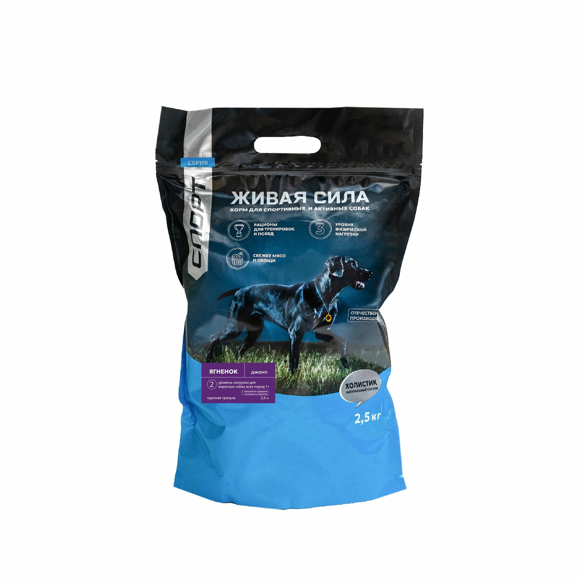 2,5 кг Живая Сила Спорт Джамп. Корм с ягненком сухой полнорационный поддержка суставов для взрослых собак всех пород. Крупная гранула. Холистик
