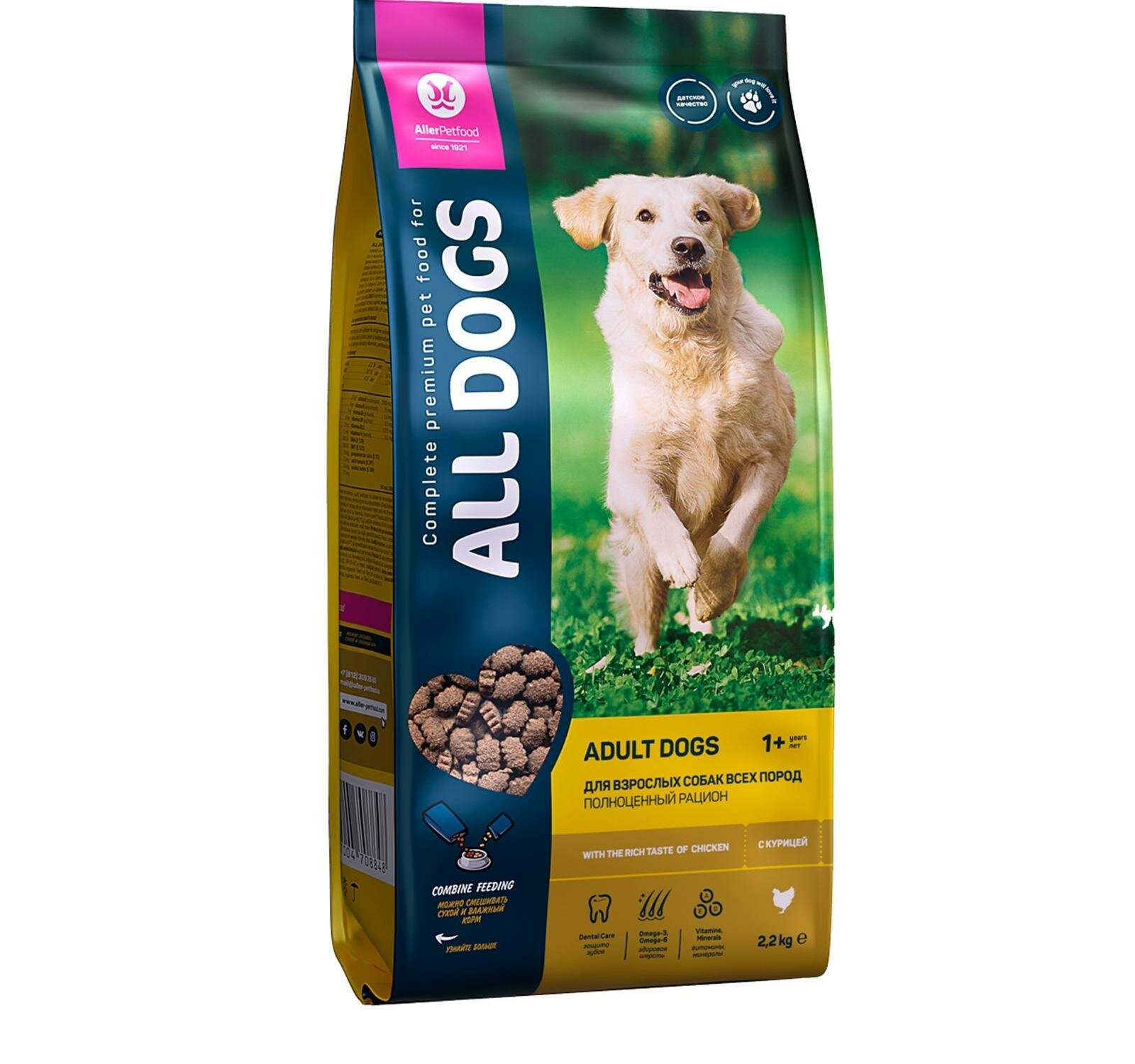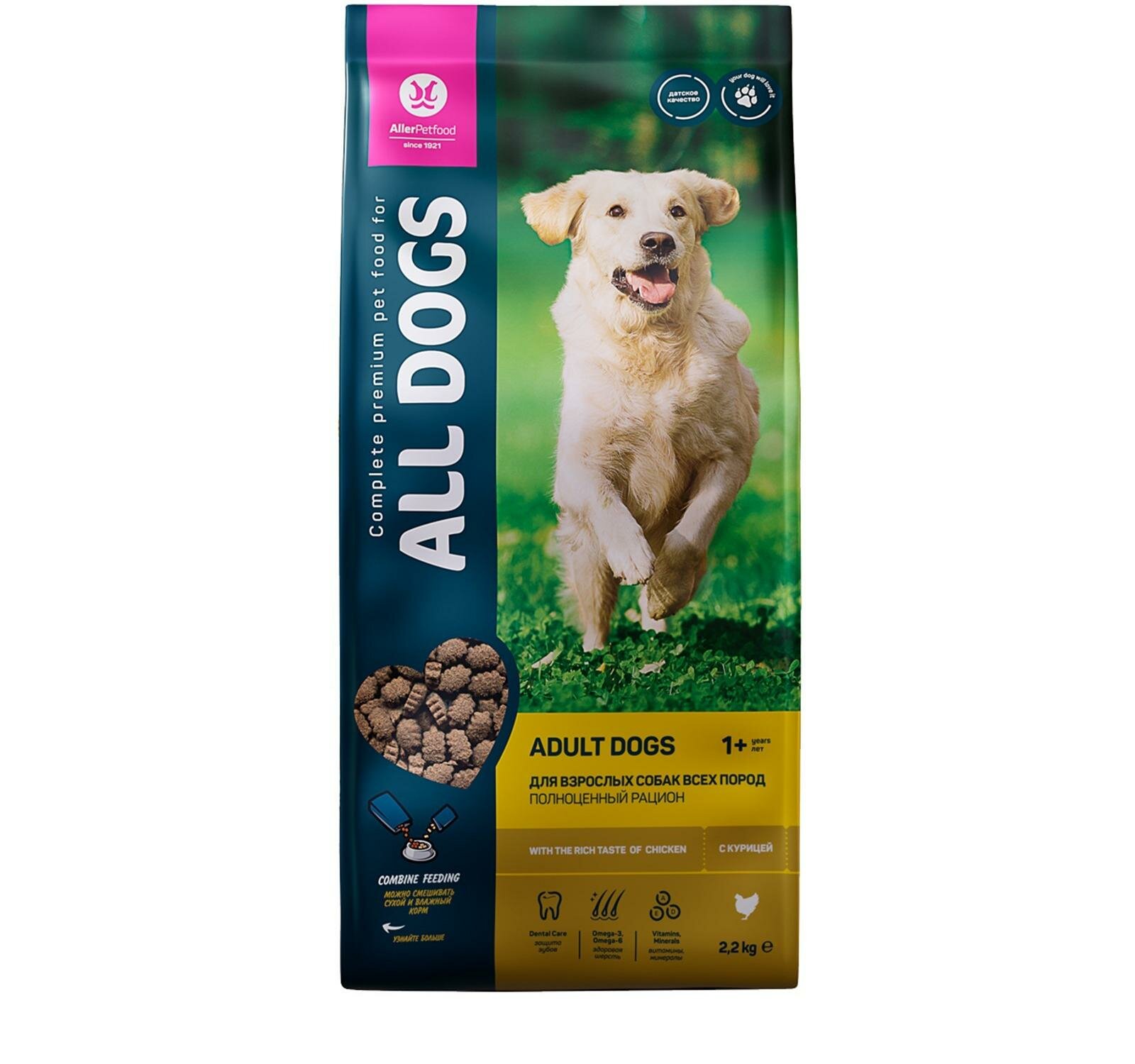Сухой корм для собак 2,2 кг ALL DOGS курица полнорационный/ Аллер Петфуд