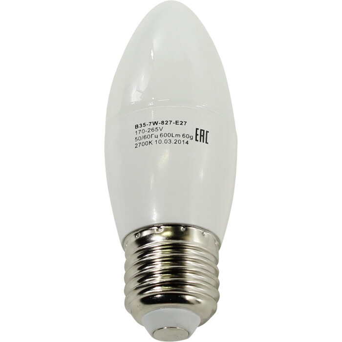 Лампа светодиодная E27 B35 7W (70W) 220V теплый ЭРА ЭРА LED-SMD-B35-7W-827-E27