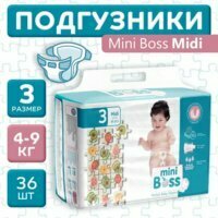 Детские подгузники Mini Boss MIDI 4-9 кг ( Размер 3 / M ), 36 шт
