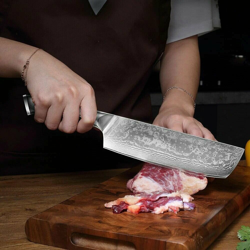 Японский кухонный нож Накири TuoTown G617006, рукоять - композит зеленый перламутр, клинок 17см (VG10-Damascus) интересное: