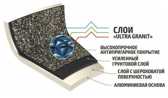 | Дополнительная информация | антипригарное покрытие Ultra granit, усиленное сверхтвердыми минералами нового поколения, близкими по твердости алмазу; ручка не съёмная |