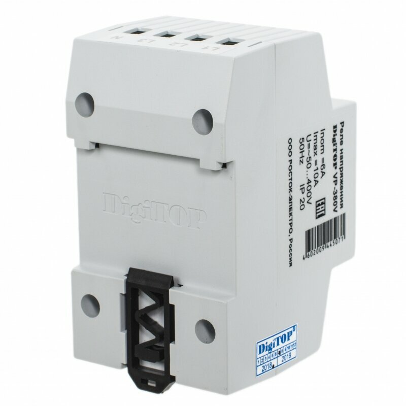 DigiTOP Vp-380V Реле напряжения трехфазное на DIN-рейку, 50-400В, макс. 6А, 5-600 сек.