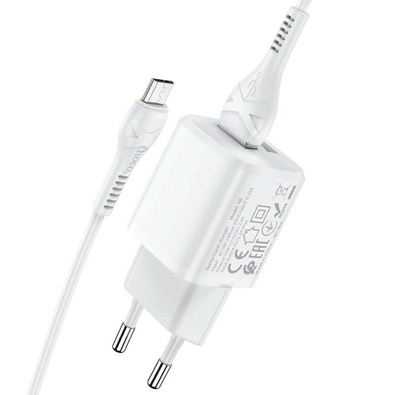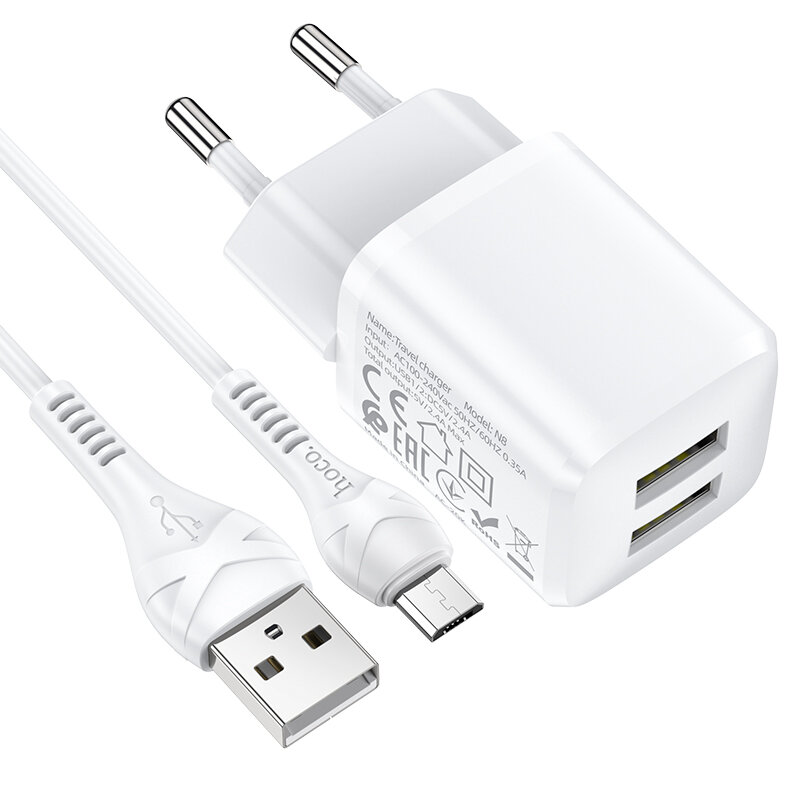 Сетевое зарядное устройство HOCO N8 Briar 2xUSB с Кабелем USB - Micro, 2.4A, 10.8W, белый