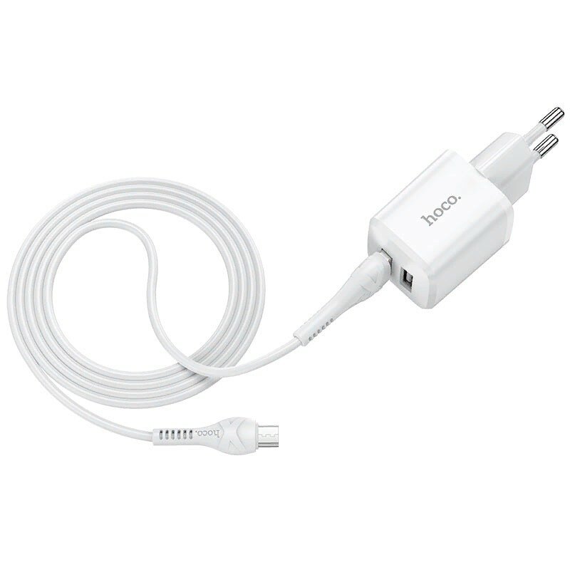Сетевое зарядное устройство HOCO N8 2USB 2.4A + кабель microUSB, 1 м, белый