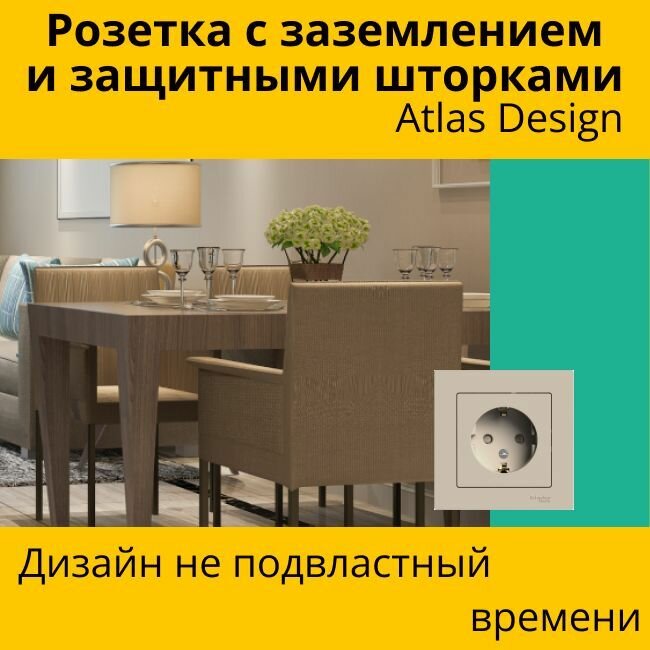 Розетка ATLASDESIGN, скрытый монтаж, с заземлением, со шторками, бежевый | код. ATN000245 | Schneider Electric (2шт. в упак.)