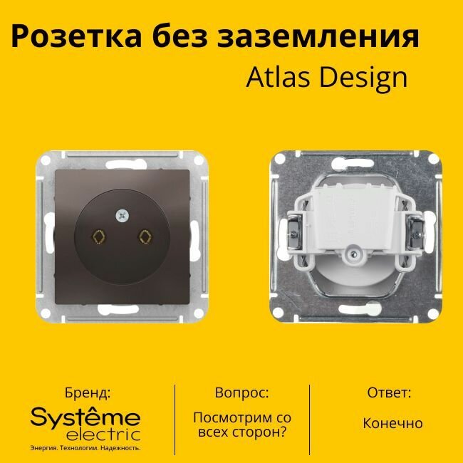 Ниже Вы можете прочитать отзывы на Розетка электрическая Systeme Electric Atlas Design без заземления, без рамки, Мокко ATN000641 - 2 шт., ознакомится с подробными характеристиками, посмотреть интересные обзоры и фотографии на Розетка электрическая Systeme Electric Atlas Design без заземления, без рамки, Мокко ATN000641 - 2 шт..