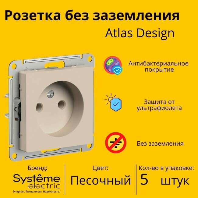 СохранитьРозетка электрическая Systeme Electric Atlas Design без заземления, без рамки, Песочный ATN001241 - 5 шт. интересное: