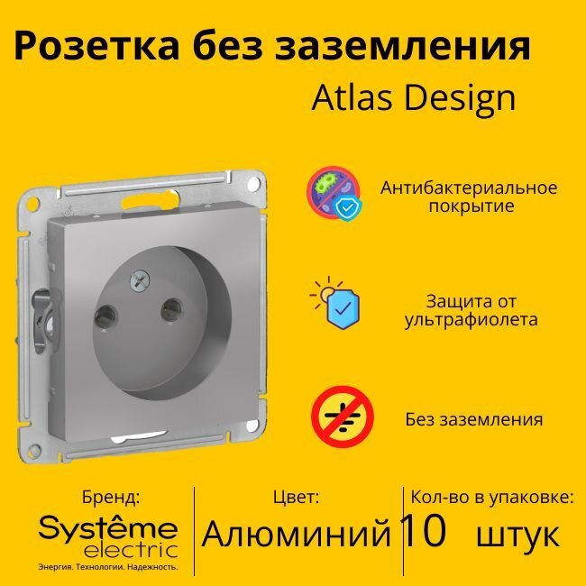 СохранитьРозетка электрическая Systeme Electric Atlas Design без заземления, без рамки, Алюминий ATN000341 - 10 шт. интересное: