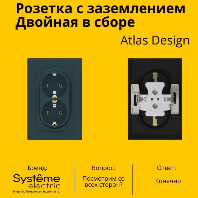 Розетка электрическая двухместная Systeme Electric Atlas Design с заземлением, в сборе 16А, Изумруд ATN000824 - 10 шт.