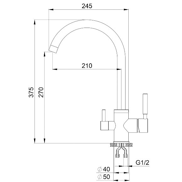 Кухонный смеситель высокий, с краном под питьевую воду GRANULA GR-2168 классик