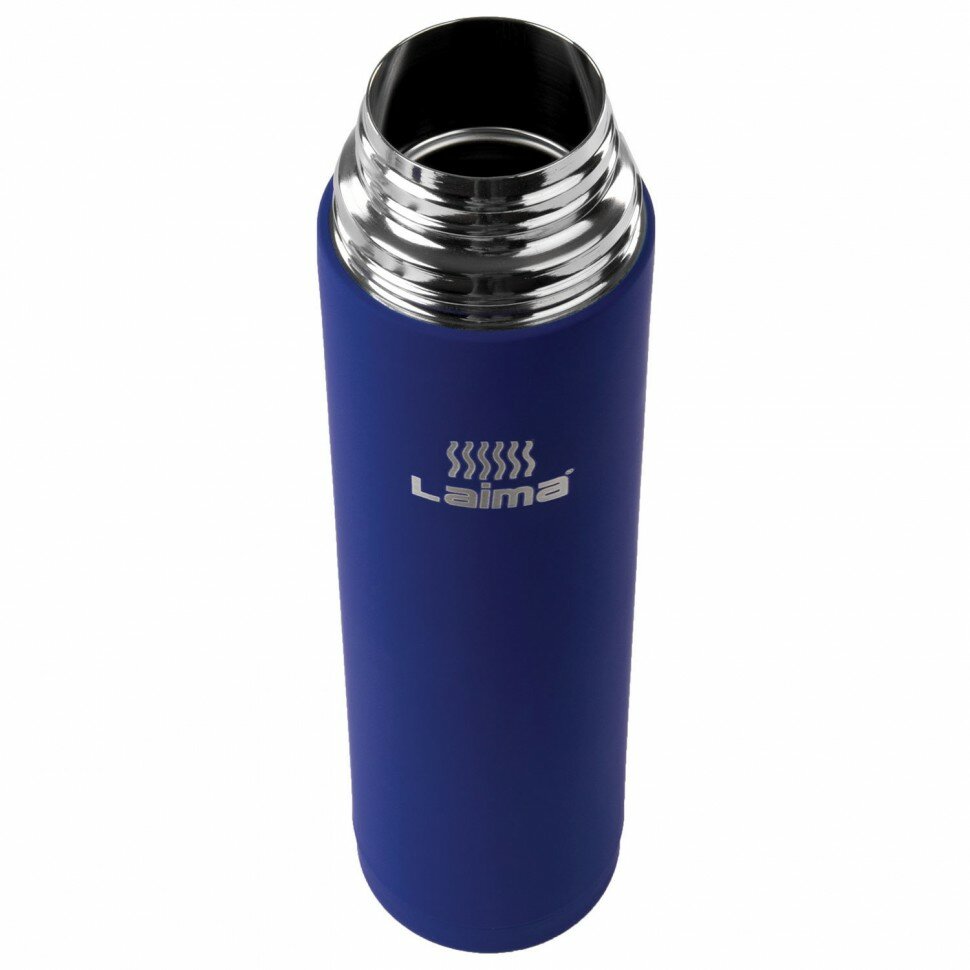 Термос Laima классический с узким горлом, 1 л, нержавеющая сталь, синий, 605124