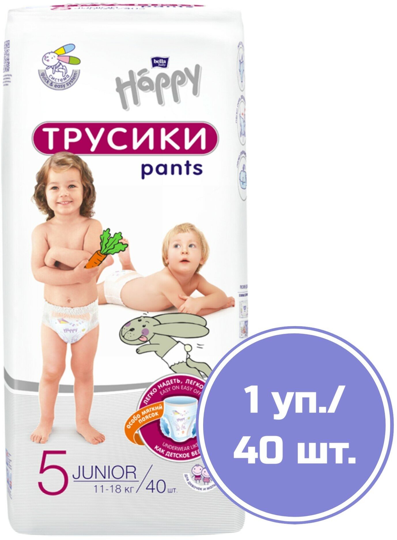 Трусики - подгузники детские bella baby Happy Junior дышащие, размер 5 (11-18 кг), 40 шт.
