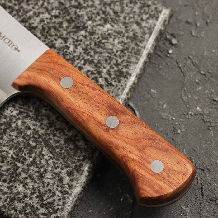| Плюсы: | Увесистый нож, удобно рубить косточки и хрящи. |