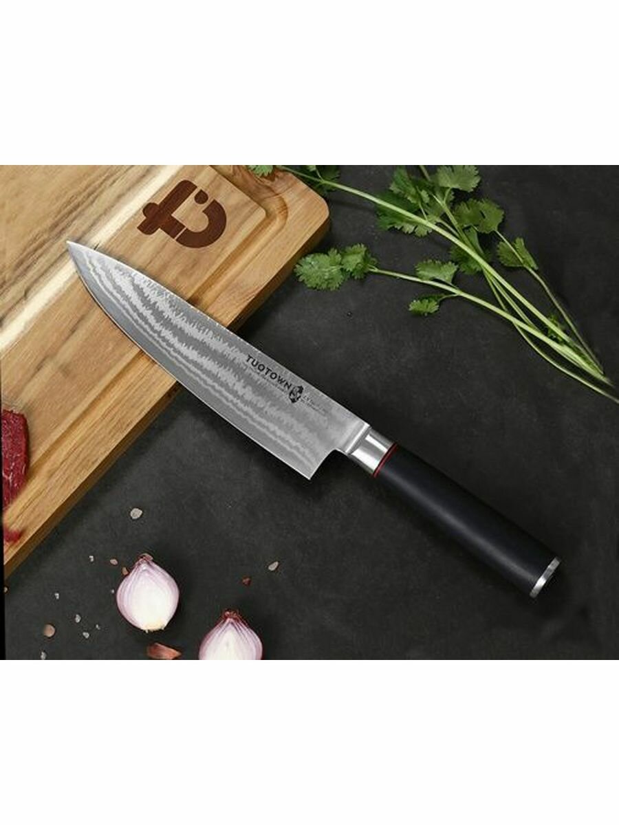 Нож кухонный профессиональный Шеф,TUOTOWN, длина клинка 20 см, сталь ламинация VG10, рукоять G10