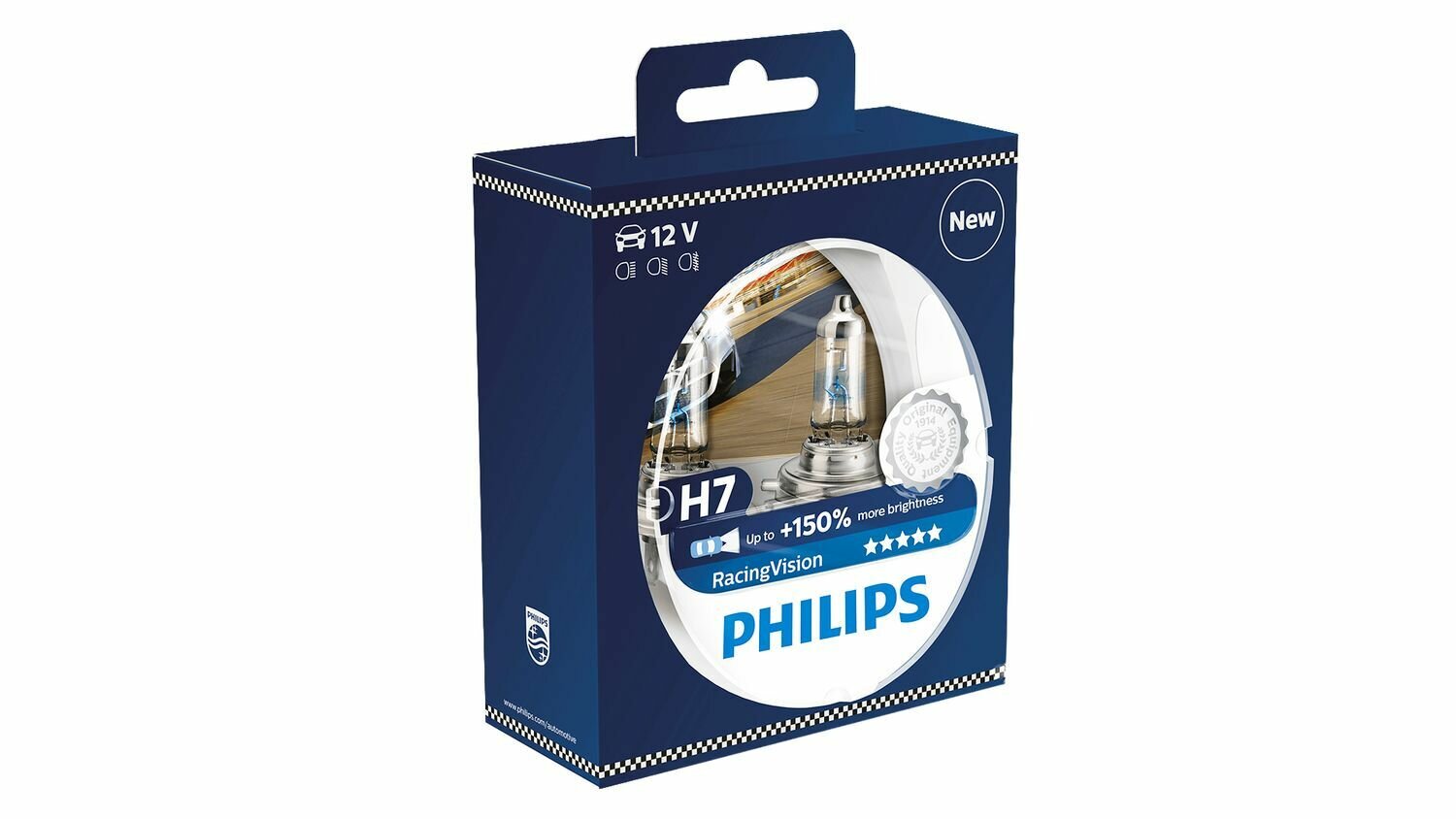 PHILIPS 12972RVS2 Лампа H7 12V 55Вт PHILIPS +150% RACING VISION BOX (2шт.)